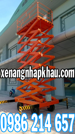 Đây là loại xe nâng người đơn, di chuyển đẩy bằng tay, nâng hạ bằng ắc quy.
